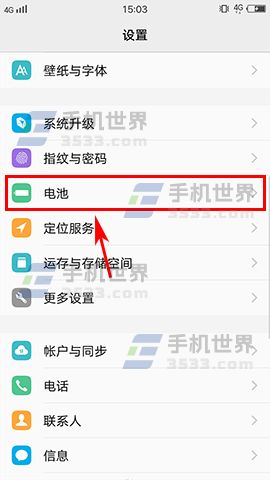 1)先打开手机【设置】,在设置菜单里点击打开【电池】选项。(如下图)