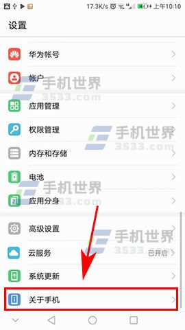1)先打开手机的【设置】,进入设置菜单后滑动到最底部,点击【关于手机】。(如下图)