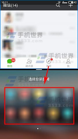 2)这时分屏的第一个应用就设置好了,然后在应用列表里选择第二个应用,分屏就完成了,在分屏显示的过程中我们可以点击中间的白色滑块调整上下显示的应用和每个应用的显示区域。(如下图)