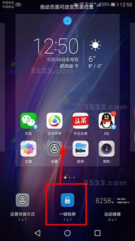 2)接着左右滑动找到【一键锁屏】,把它拖动到桌面的位置,这样只需点击这个开关就能直接锁屏了。(如下图)