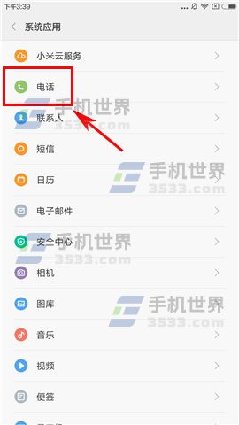 1)进入设置菜单打开【系统应用】,打开后找到【电话】选项并点击它。(如下图)