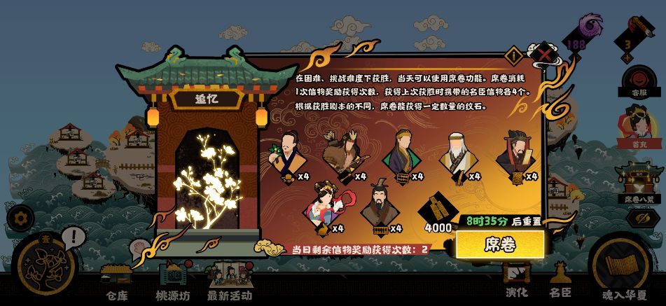 2、使用席卷,会消耗当日获取名臣信物次数;