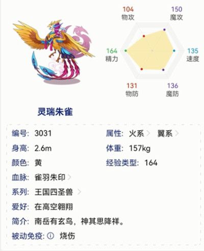 简析:朱雀分支进化。整体机制是防控每回合获取火羽印记,通过丹羽燎空释放印记给对方留下天火,专属技能对具有天火的目标有额外效果。保命有限伤、干扰命中和后手回血,两个威力技能攻击的同时应该有不同的方式删除对方pp,输出大概是靠翼系技能强化魔攻再用火系技能先手释放并提升威力。血脉提到的新增阵亡队友时的增益效果以及何谓防控pp异常都有待测试。看来朱雀是打算一雪前耻了。