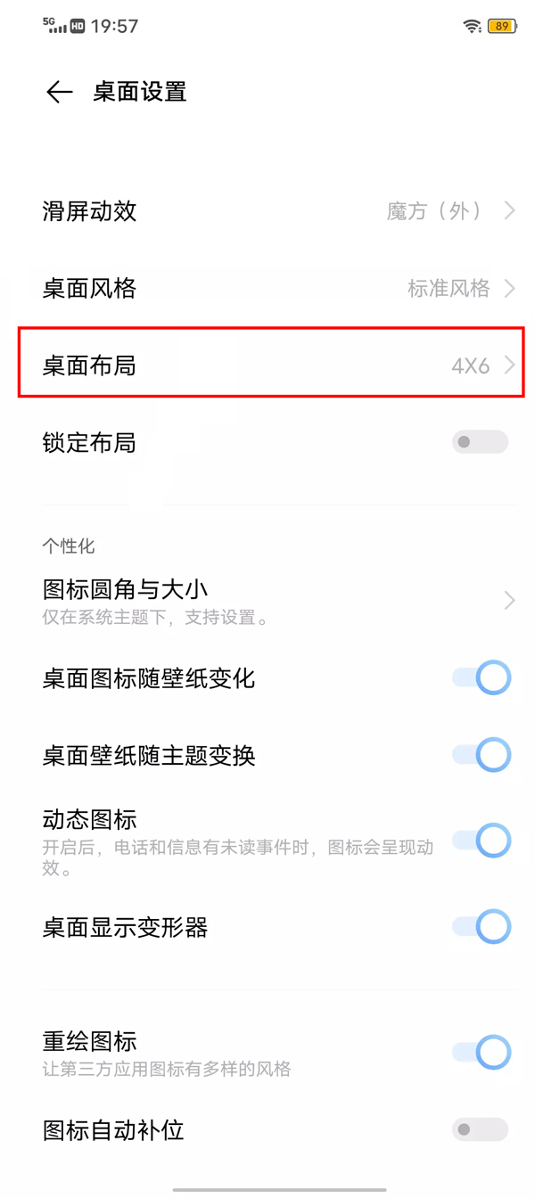桌面长按空白/双指捏合→点击桌面设置→选择桌面布局,根据需要选择你喜欢的布局。