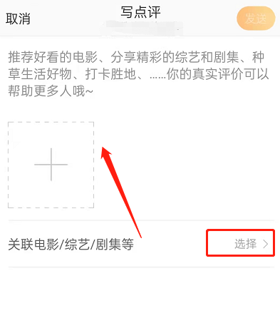 3、选择关联的作品,添加文字、图片,进行真实评论,最后点击发送即可。
