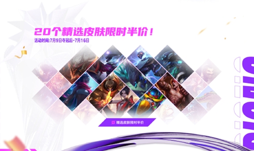 1、7月9日起20款精选皮肤参与限时半价折扣。