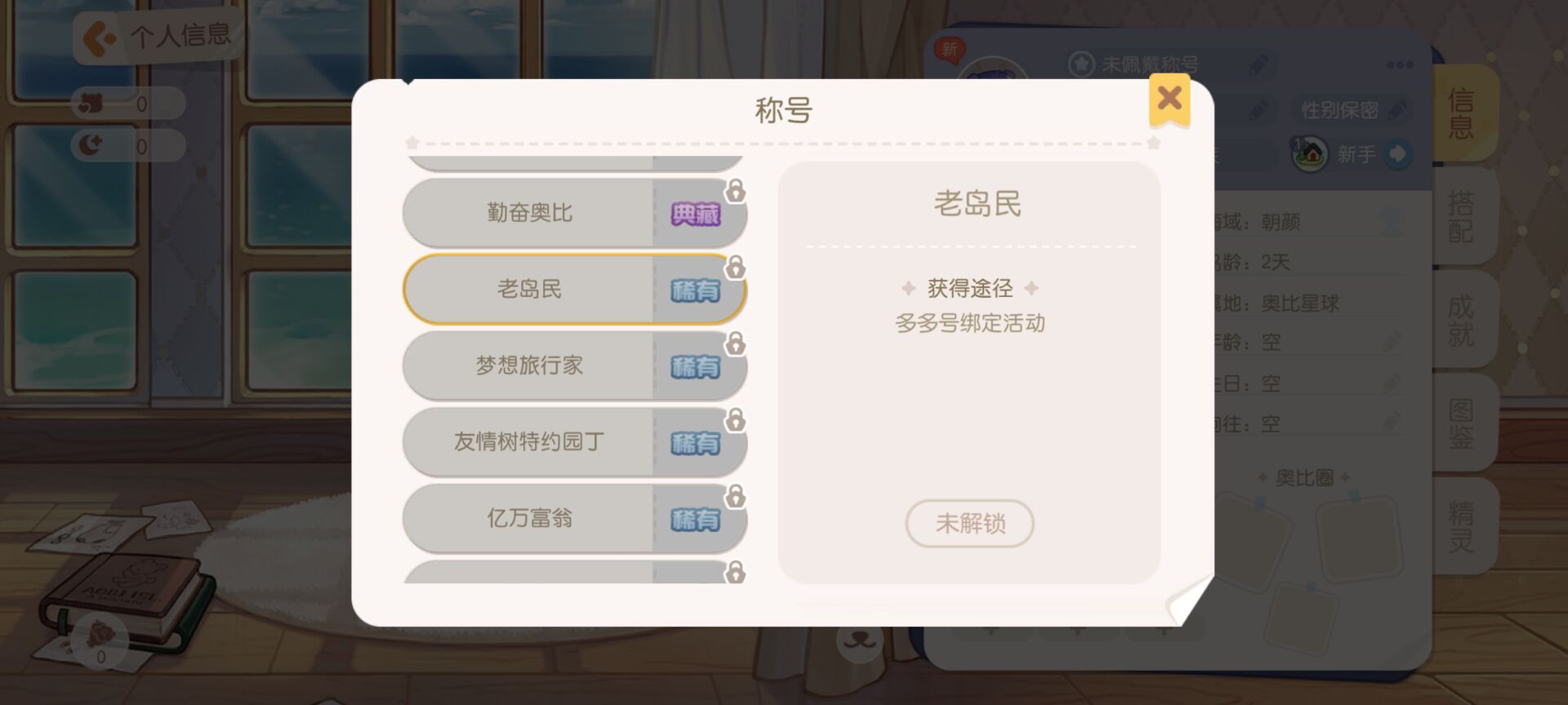 老岛民的称号需要前往游戏官网进行多多号绑定即可获得