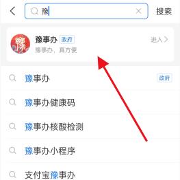 3、首先我们打开支付宝,然后在搜索框里面直接搜索“豫事办”,然后点击官 方小程序。