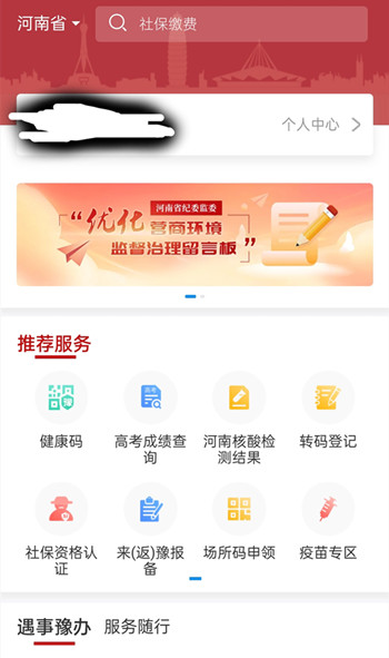 4、进入之后,我们就可以在这个小程序里面体验到“豫事办”的全部功能了