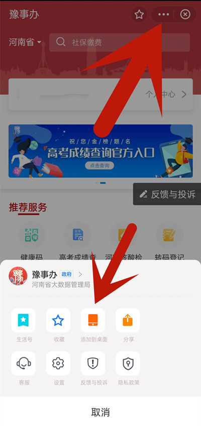 6、我们点击右上角的三点按钮,然后点击下面的“添加到桌面”,就可以添加快捷方式了。