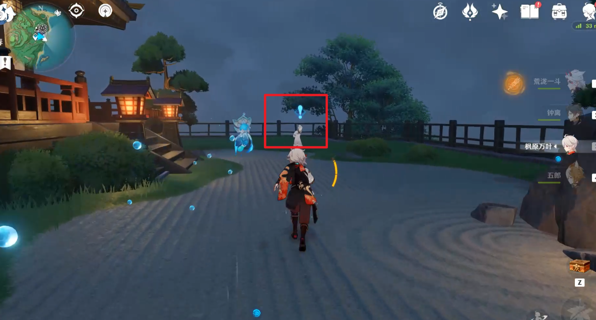 来到稻妻鸣神岛神里屋敷内,与亭子附近的老婆婆古田对话触发任务