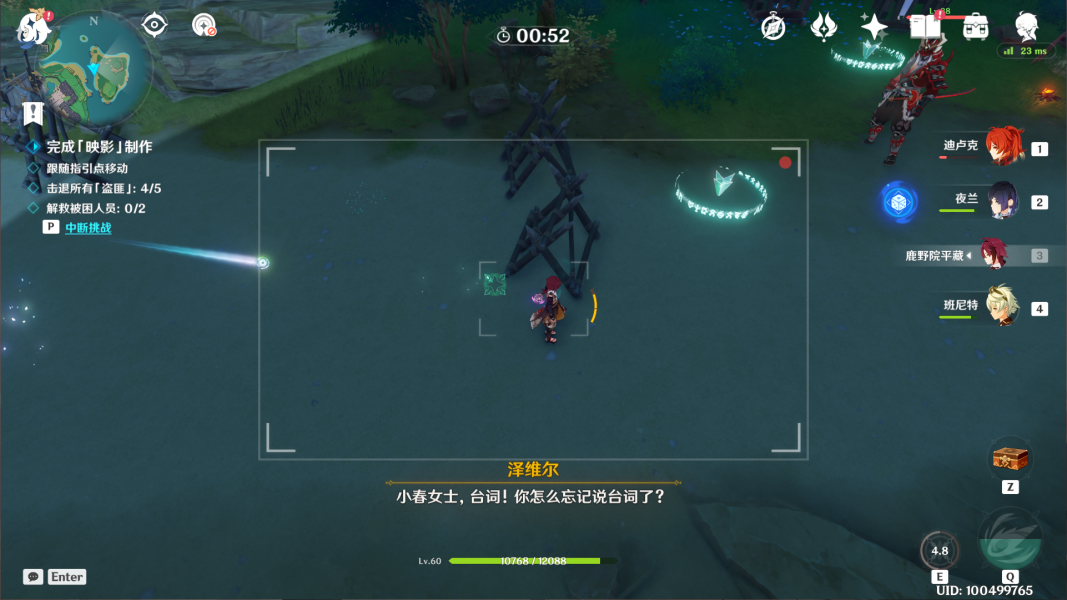 获取台本后,在摄影对话中选择对应的台词。期间还需要进行一次摄影视角下的战斗。