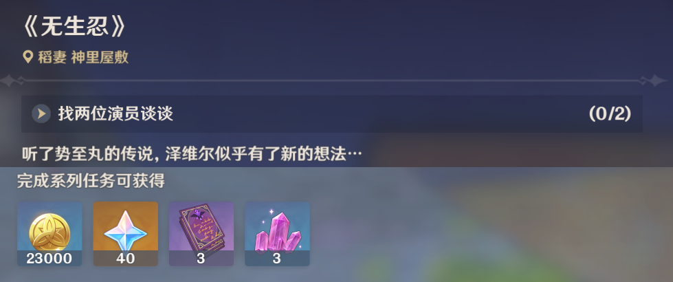▲1.在离岛和神里屋敷找到两位演员,和他们交谈。