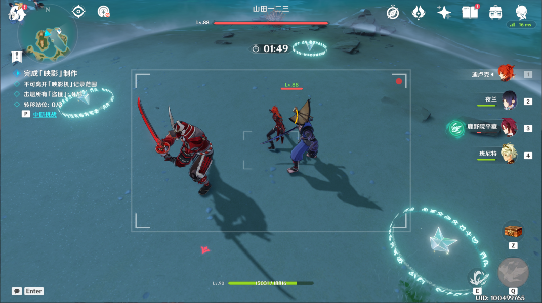 我们需要在摄像视角与敌人进行战斗,需要不离开摄影范围的同时击败敌人,还要触碰到三个标记圆圈点位。