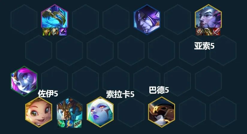 瑞兹3星尽快上八,以5法师为基础去搜巴德/索拉卡两张橙卡,巴德可以给阵容整体加属性还能提高来高费卡的几率,aoe的控制效果也非常重要。索拉卡则是万用插件,提供回复还有机会秒杀敌人!都没有就上一张娑娜开2魔导提供控制。后续在八级慢搜除了五费卡的全体3星,稳定局势后考虑上九追阵容上限。