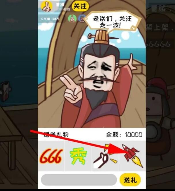 3、等切换到手机直播画面,点击礼物中最右边的火箭,等送完火箭礼物后就通关了!