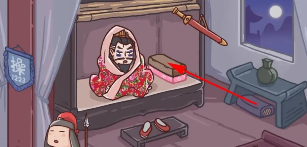 1、将屋中桌子上的枕头拖动到曹操床上的粉色枕头上面。