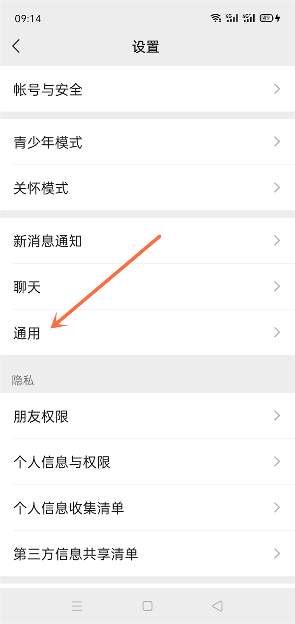 2、在设置页面点击通用。