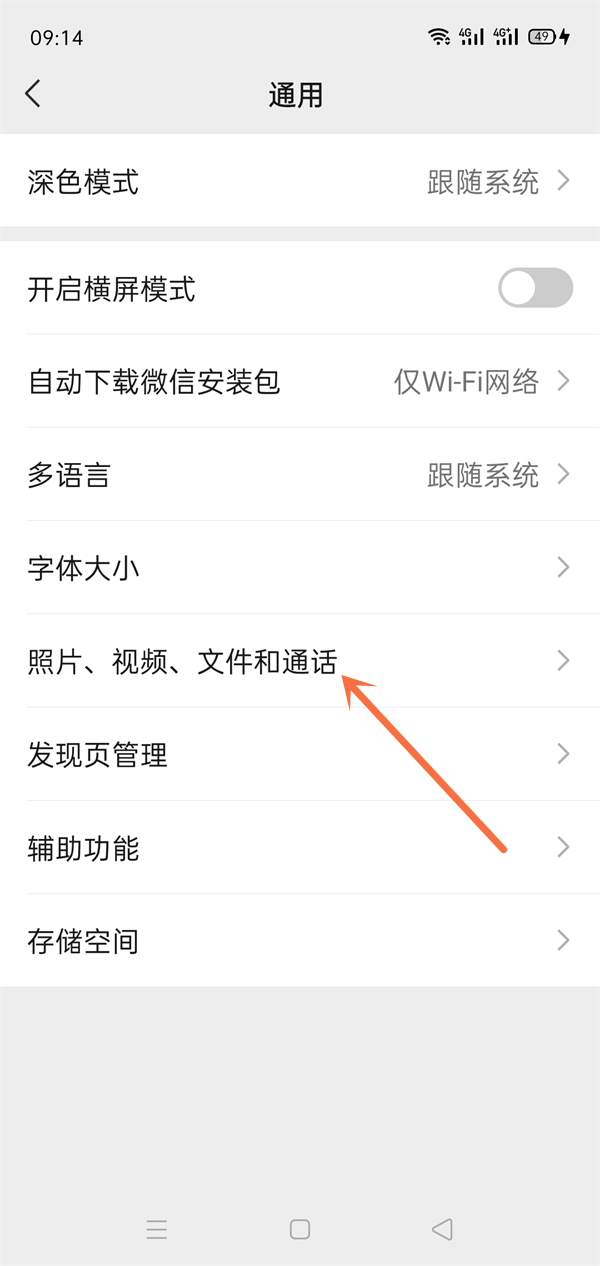 3、在通用页面点击照片、视频、文件和通话。