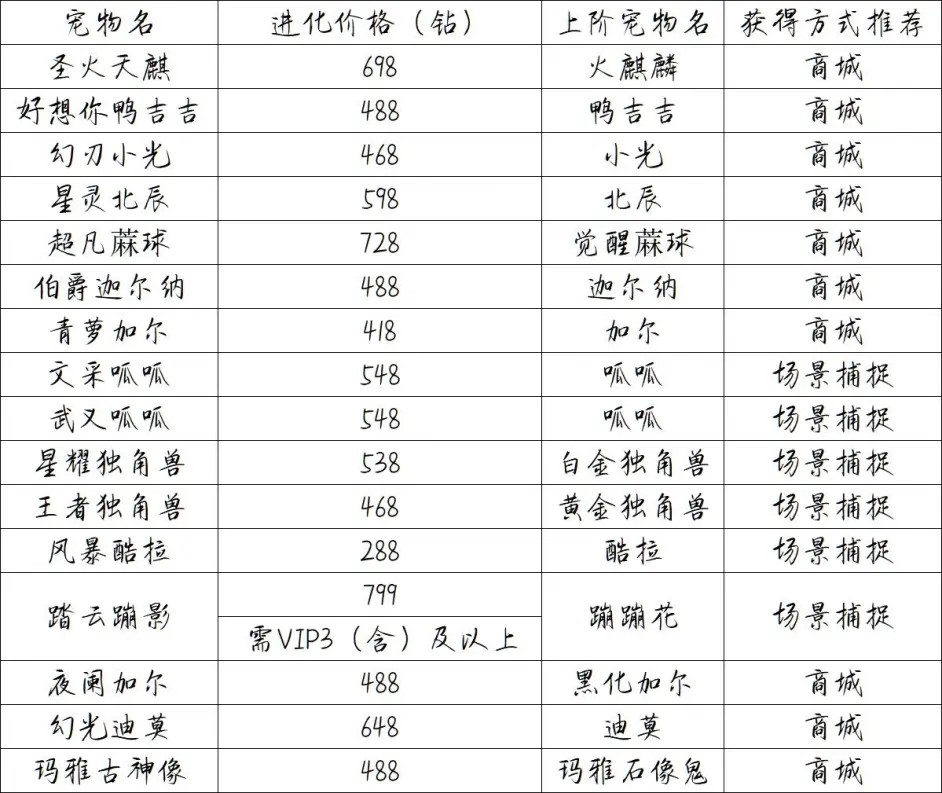 本次活动提供普通和进化两个版本。普通版即直接获得宠物。进化版即需要准备满级上阶宠物进化获得。会先获得进化资格,后再进行进化。其中会有一些条件和门槛,请看清楚界面上的说明哦~
