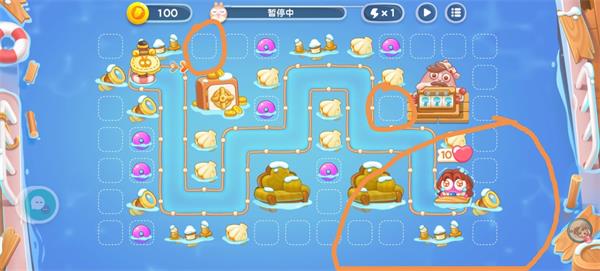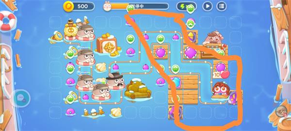 6.把左边画圈位置水雷撤掉,然后抽奖,打建筑,这里开始就需要一点点运气了,这关难的不是金萝卜是全清,慢慢的打掉周围的就行了,金萝卜不用管自己就拿到了。