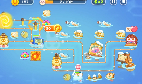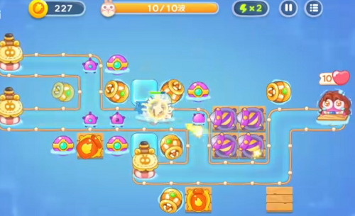 第8波,冰冻兔登场,能手动打就手动打,兔子太多时就随意吧。注意解冻住的炮塔即可。