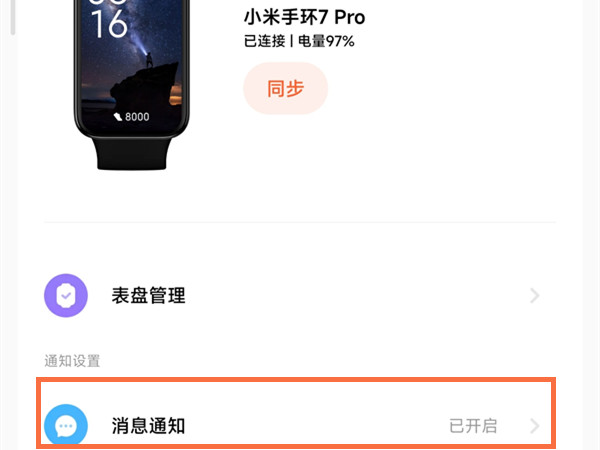 1、打开小米运动健康app,在设备界面点击消息通知。