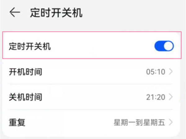 2、点击【设置】-【辅助功能】-【定时开关机】,开启后可自定义手机自动开关机时间。