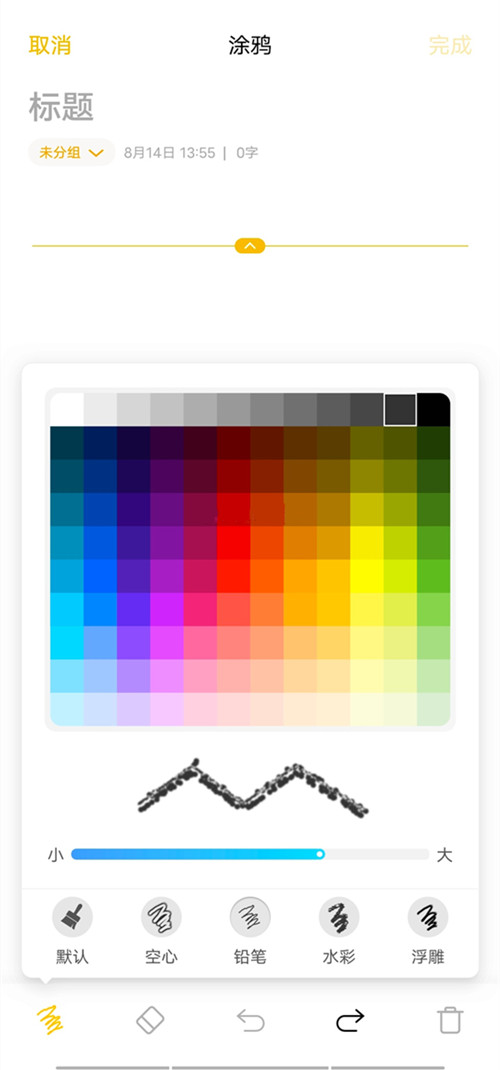3、点击涂鸦底部的画笔图标,可选项对应的“笔”以及调节笔的粗细/颜色。