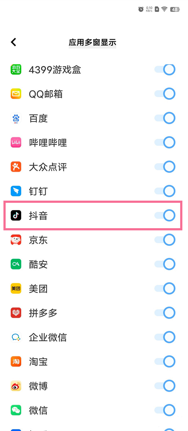 4、打开【抖音】右侧的开关即可。