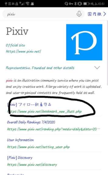 进入微软必应,搜索pixiv(注意一定要切换到国际版,国内版的网页进去后可没有给你注册的地方),然后点击圈起来的栏目。