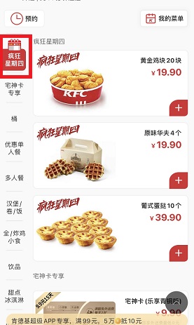用户也可以直接去店里购买肯德基疯狂星期四优惠套餐。