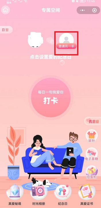 2、在界面中,需要用户先登录自己的微信,然后在其中点击【邀请另一半】去进行邀请;