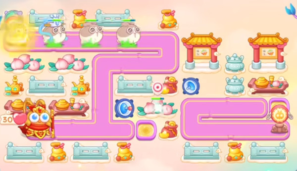 4.桃子障碍物打掉之后补一个雷达,加一个导弹塔。开始锁定上面的钱袋子。
