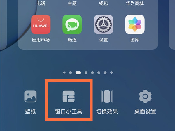 1、在手机桌面两指捏合进入主屏幕编辑状态,点击【窗口小工具】。
