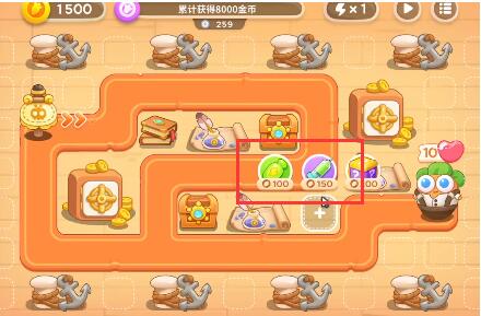 过关要求:累计获得8000金币,初始金币:1500。