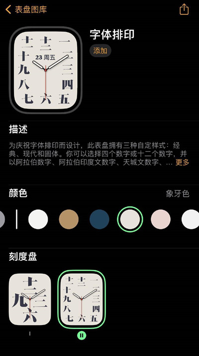 2、达到系统要求后,我们打开表盘图库,然后在表盘中找到“字体排印”这个表盘,然后点击添加即可。
