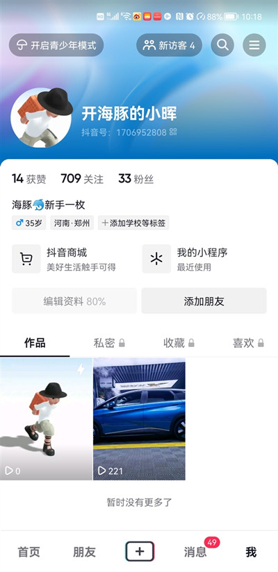 2、进入到主页之后,我们点击左上方的头像,然后在头像界面下面会弹出“创建抖音仔仔”。