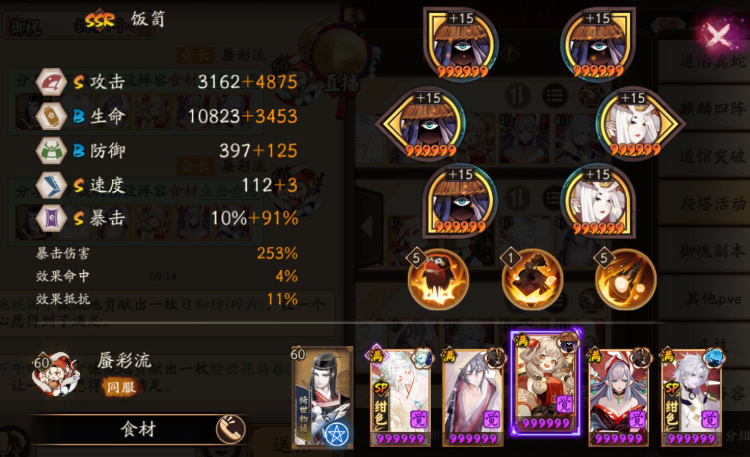 SP辉夜姬:蚌精/散件,攻攻爆(蚌精生生爆),满2技能——如果不带蚌精,9层P1青蛙有概率会导致减员