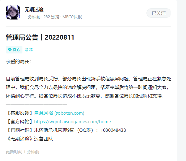 目前有许多玩家过完新手教程就黑屏,目前官方确定为bug,正在紧急修复中。