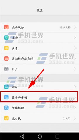 1)第一步我们先打开手机进入系统【设置】,进去后再点击进入【锁屏和密码】功能。(如下图)