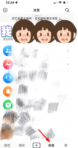 1、在手机抖音的软件界面,点击界面下方的【消息】切换到消息界面;