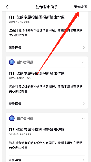 4、这里有置顶通知、周报订阅方式和创作者周报功能,点击“创作者周报”,将功能设置为“接收”就可以了。