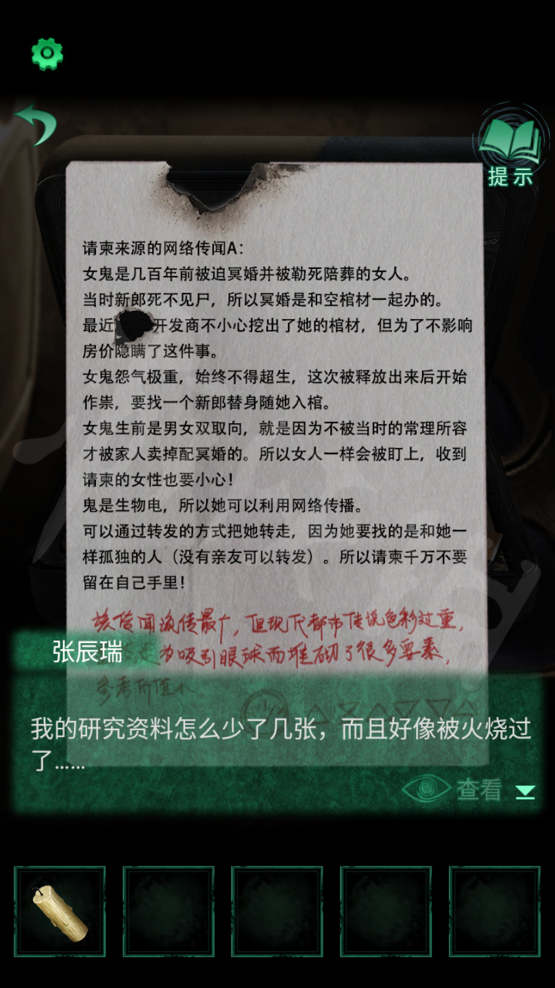 在自己行李箱中先看到了一张纸,然后拿到了红色圆珠笔以及打火机;