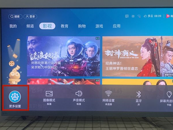 2、在遥控器上按下海信电视设置,点击更多设置。