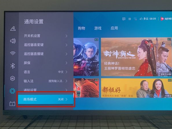 3、在通用设置里,将商场模式打开。