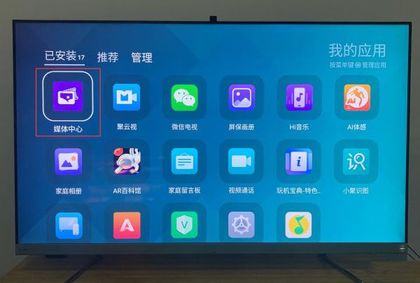 4、插入U盘后,可以在媒体中心找到U盘文件,安装文件即可。