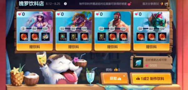 英雄联盟手游饮料通过活动中获取材料,自制获取的。