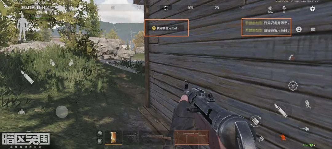 在预组队时小队内可通过语音交流,说明自己需要什么物品;而在非预组队时语音沟通往往不那么顺畅,这时候就可以通过游戏内的文字输入或快捷语音指令(如“我需要药品/食物”等)告知队友自身状况,以及需要的物品。