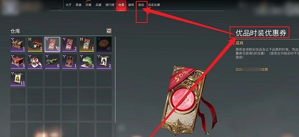 1、打开游戏可以在仓库查看任选时装抽奖券使用方法。